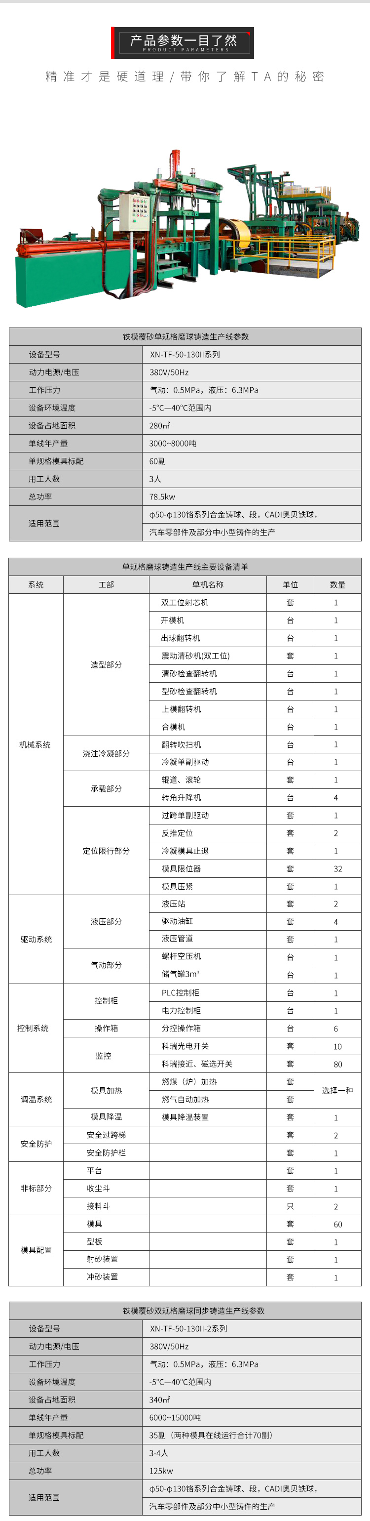 XN-TF-90II鐵模覆砂鑄造生產線相關技術參數: